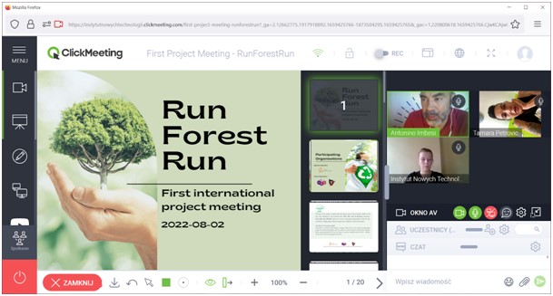 2 sierpnia 2022 roku odbyło się w formie online pierwsze spotkanie partnerów projektu „Run Forest Run”. Była to okazja do zapoznania się z partnerami oraz omówienia założeń projektu, jak działania w projekcie oraz podział obowiązków. Omówiono również kwestie finansowe i administracyjne. Spotkanie stanowiło dobry początek do efektywnej realizacji projektu!!