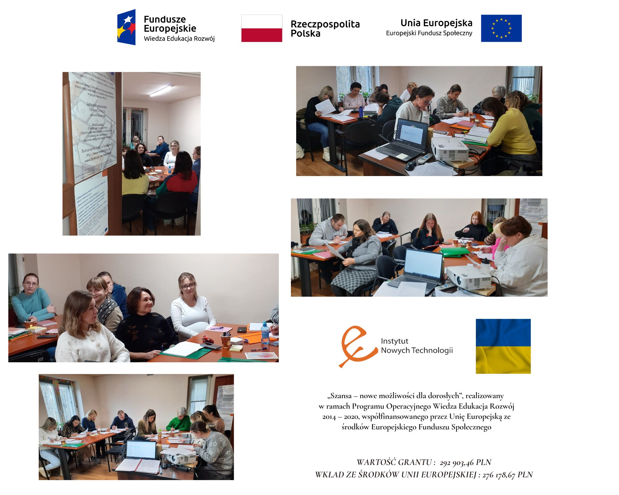 Kolejne 4 grupy uchodźców z Ukrainy rozpoczęły zajęcia w modelu wsparcia „Nowe wyzwania-nowe możliwości” realizowanym w ramach projektu „Szansa – nowe możliwości dla dorosłych”, w ramach Programu Operacyjnego Wiedza Edukacja Rozwój 2014-2020, współfinansowanego ze środków Europejskiego Funduszu Społecznego. Uczestnicy wezmą udział w zajęciach z języka polskiego oraz zajęciach edukacyjnych (nt. instytucji w Polsce, poszukiwania pracy, wiedzy o Polsce). Zajęcia odbywają się od 02 stycznia 2023 i potrwają do końca marca 2023r.