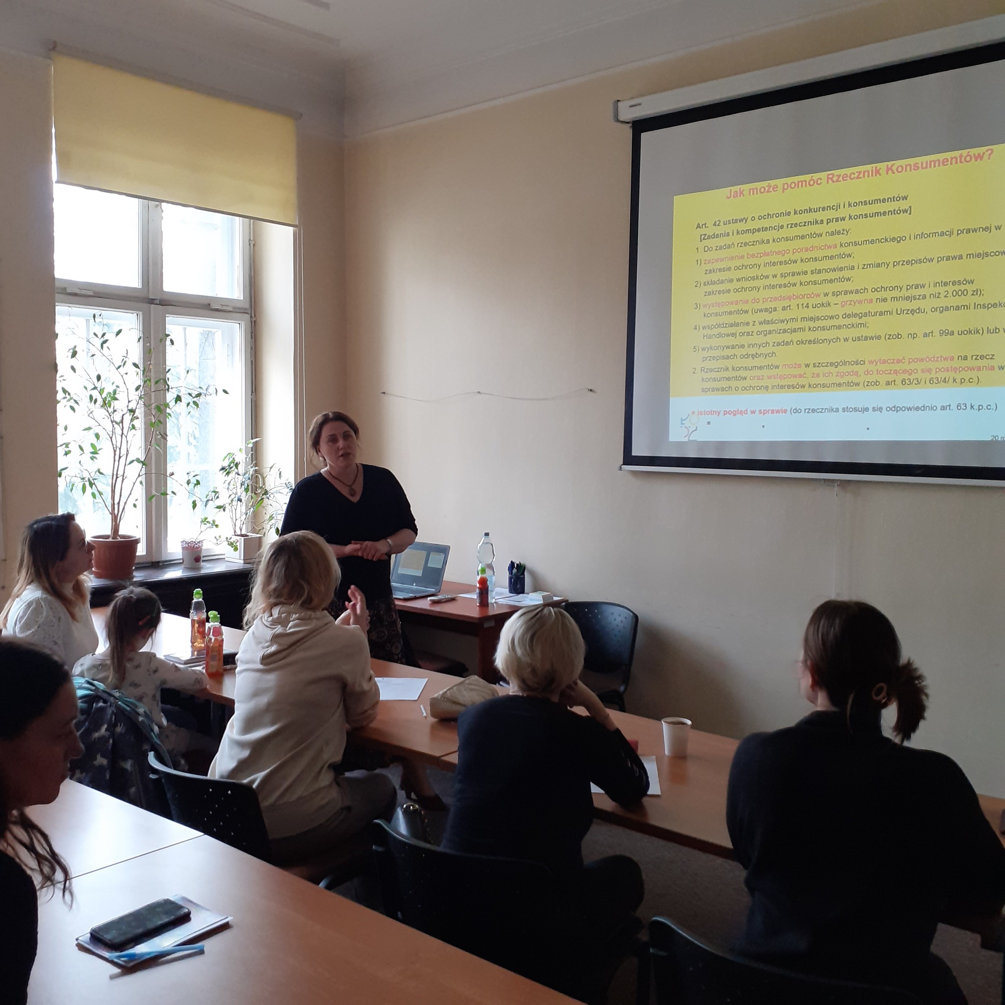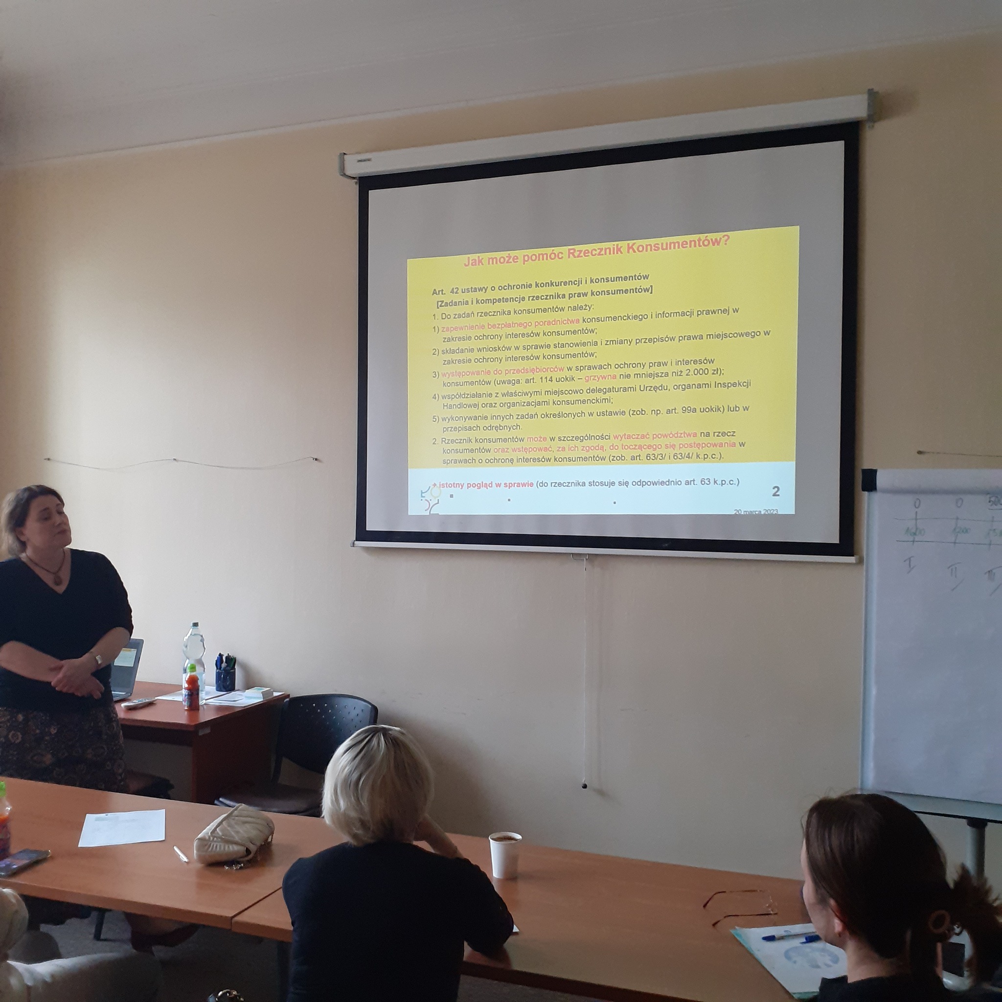 Uczestnicy modelu „Nowe wyzwania – nowe możliwości” wzięli udział w spotkaniach z Miejskim Rzecznikiem Konsumentów w Łodzi. Podczas spotkań uczestnicy otrzymali informacje o działalności Biura, możliwości uzyskania bezpłatnej porady prawnej, zapoznali się z prawami konsumenckimi obowiązującymi w Polsce i UE oraz możliwościami postępowania np. w przypadku reklamacji, niezgodności towaru z umową.