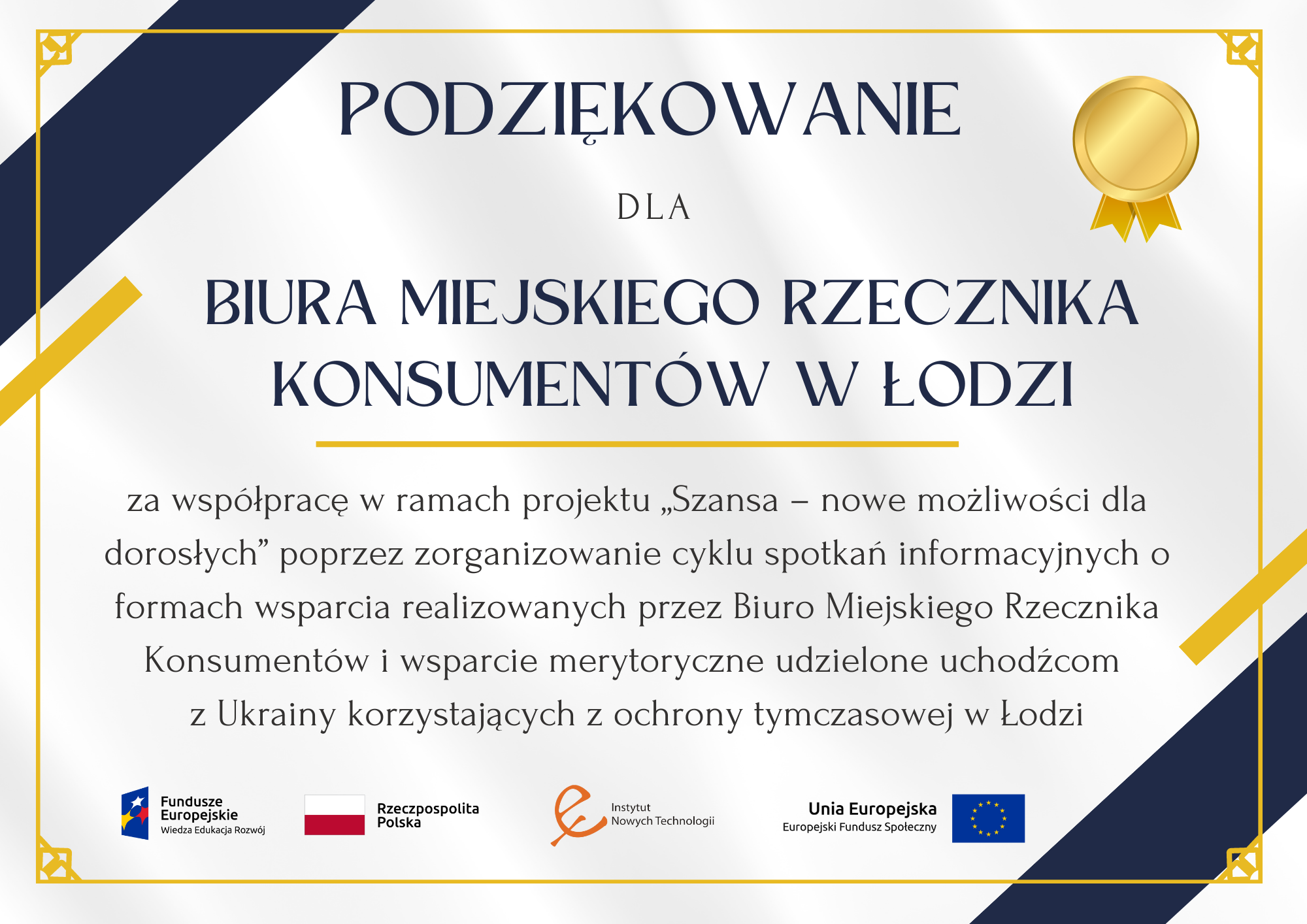 Serdecznie dziękujemy Pani Dr Annie Mlostoń-Olszewskiej Miejskiemu Rzecznikowi Konsumentów w Łodzi za współpracę i przeprowadzenie spotkań.